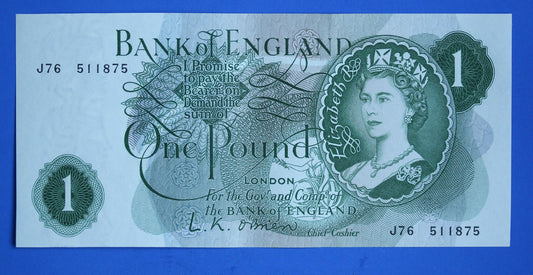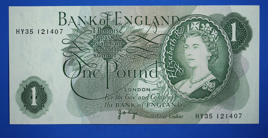 1970 Bank of England One pound 1 pound JB Page Prefix "HZ20" banknotes, Elizabeth II [11/25 33658]