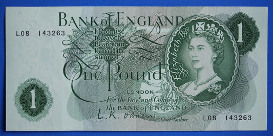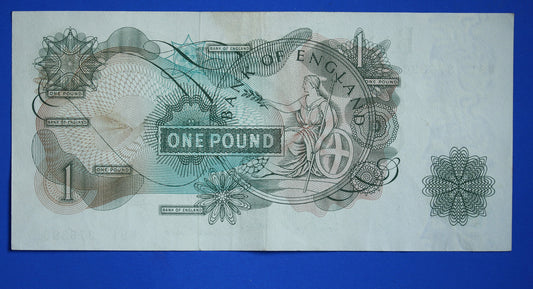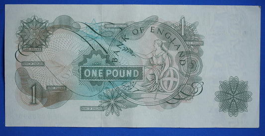 1960 Bank of England One pound 1 pound, O'Brien "W91" Elizabeth II banknote [R06/25 30236]