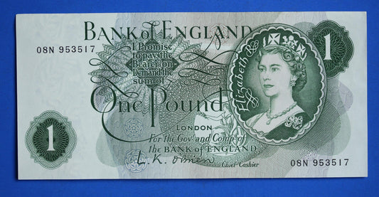 1960 Bank of England One pound, O'Brien "08N" Elizabeth II banknote [R12/25 31542]