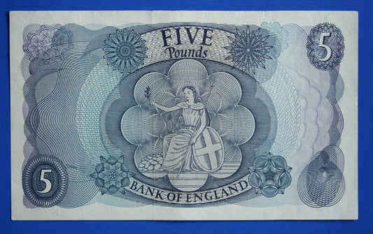 1967 Bank of England Five pound 5 pound, Fforde "Y49" banknote [02/25 31639]