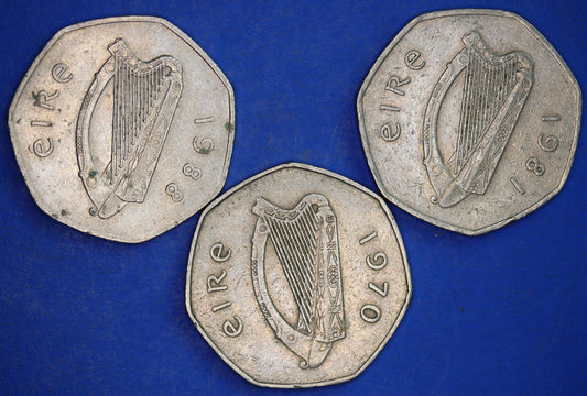 GENUINE Irish Ireland EIRE coins, Collection of Irish Coins - Fifty Pence 50p various dates, Woodcock [R12/25 31700]