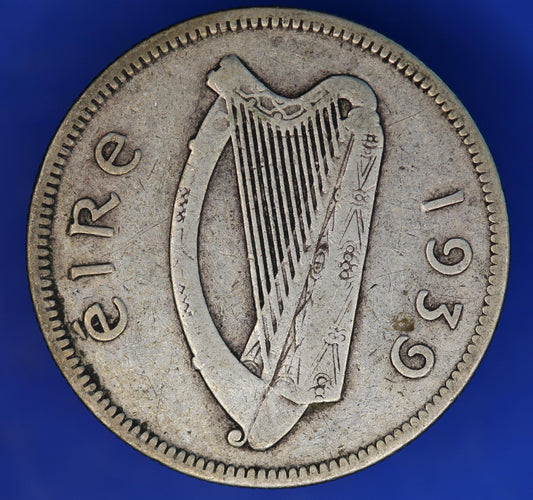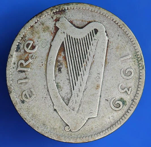 GENUINE 1939 Irish Half Crown 2/6 Ireland EIRE coin, 75% silver, Irish Hunter Horse [10/25 33575]