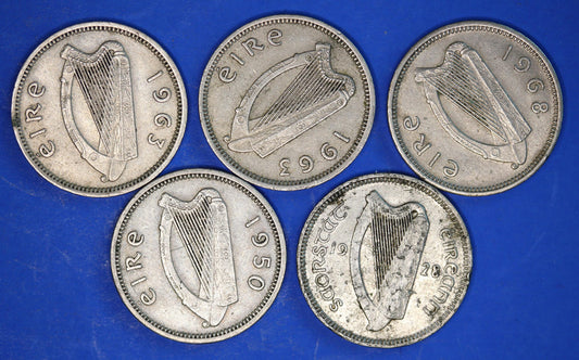 There have been three sets of coins in Ireland since independence. In all three, the coin showed a Celtic harp on the obverse.