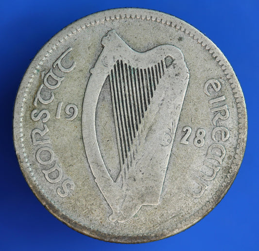 GENUINE 1928 Irish shilling Ireland EIRE coin, 75% silver, Bull Coin [R12/25 31602]
