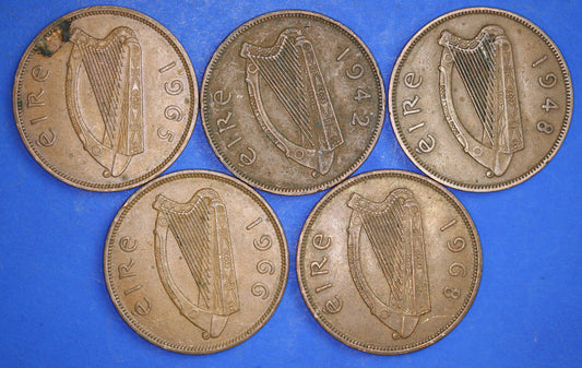 GENUINE Collection 5 Irish Half Penny Pennies 1/2d EIRE Ireland coins, different dates, Sow & Piglets [11/24 31404]Regular price £15.99 GBPRegular priceUnit price / per£18.99 GBPSale price £15.99 GBPSale