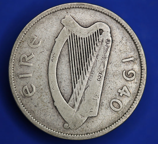 GENUINE 1940 Irish Half Crown 2/6 Ireland EIRE coin, 75% silver [R12/24 28991]