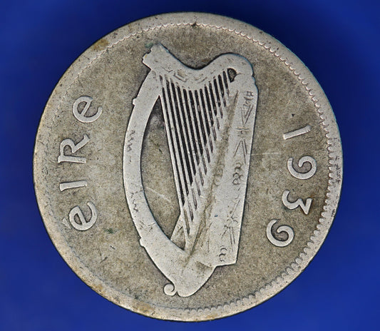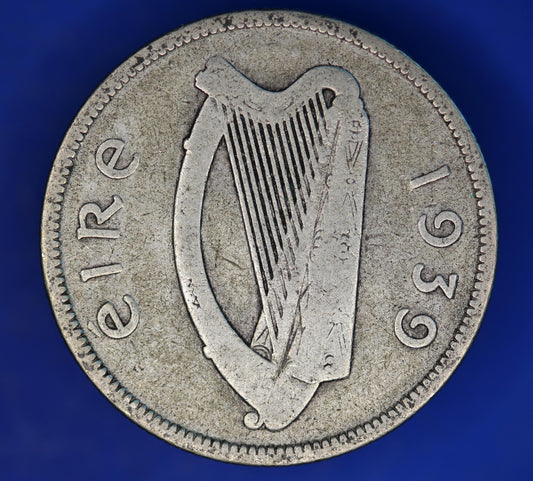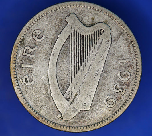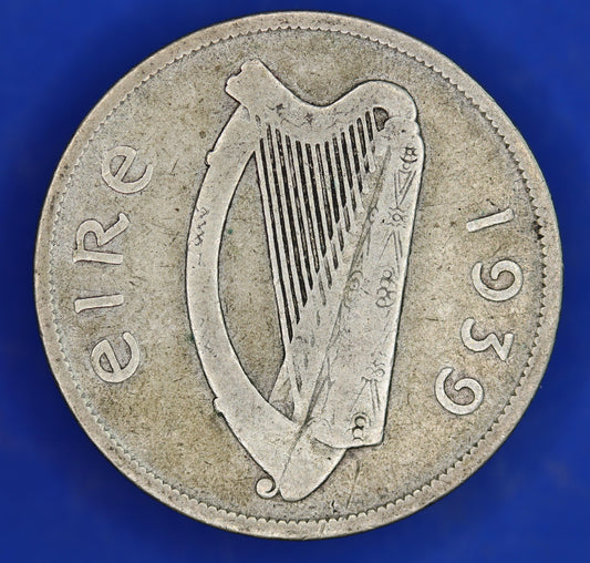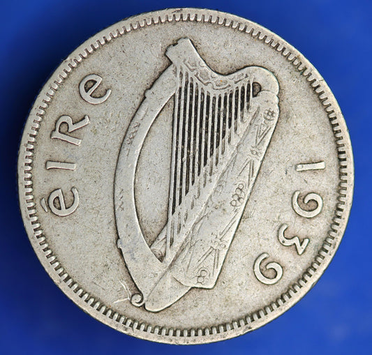 GENUINE 1939 Irish florin two shillings Ireland EIRE coin, 75% silver [12/24 31593]