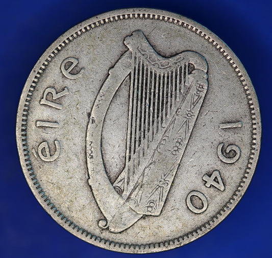 GENUINE 1940 Irish Half Crown 2/6 Ireland EIRE coin, 75% silver, Irish Hunter [R09/24 28332]