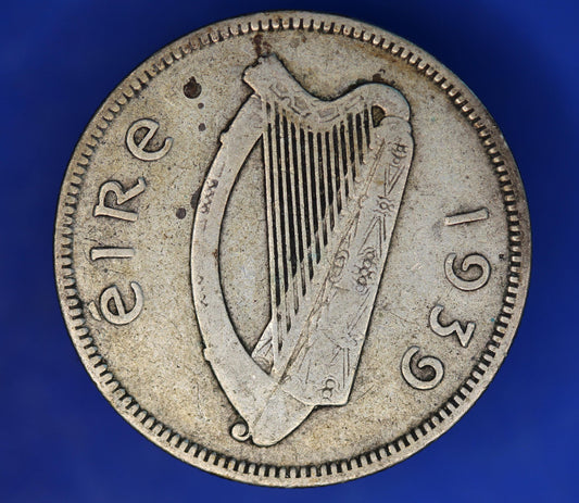 GENUINE 1939 Irish Half Crown 2/6 Ireland EIRE coin, 75% silver, Irish Hunter Horse [03/25 32301]