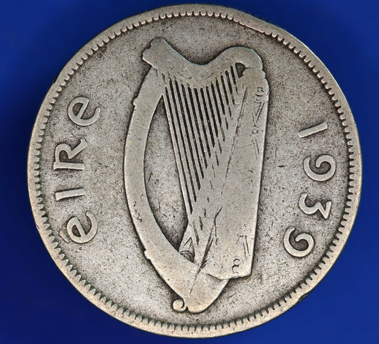 GENUINE 1939 Irish florin two shilling Ireland EIRE coin, 75% silver [06/24 30283]