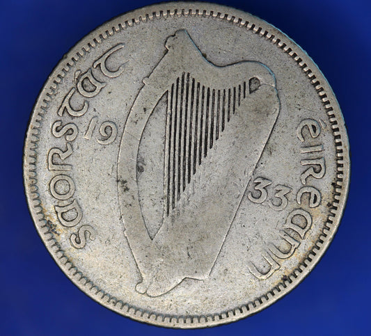 GENUINE 1933 Irish shilling Ireland EIRE coin, 75% silver, Bull Coin [12/24 31598]