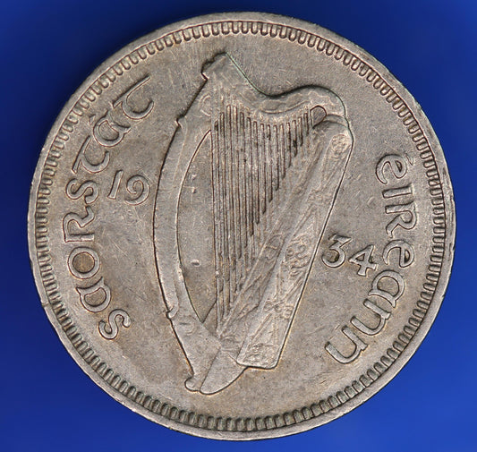 GENUINE 1934 Irish Half Crown 2/6 Ireland EIRE coin, 75% silver, Irish Hunter [02/25 28047]