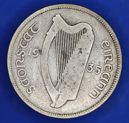 GENUINE 1935 Irish florin two shillings Ireland EIRE coin, 75% silver, Irish Salmon [03/25 32303]