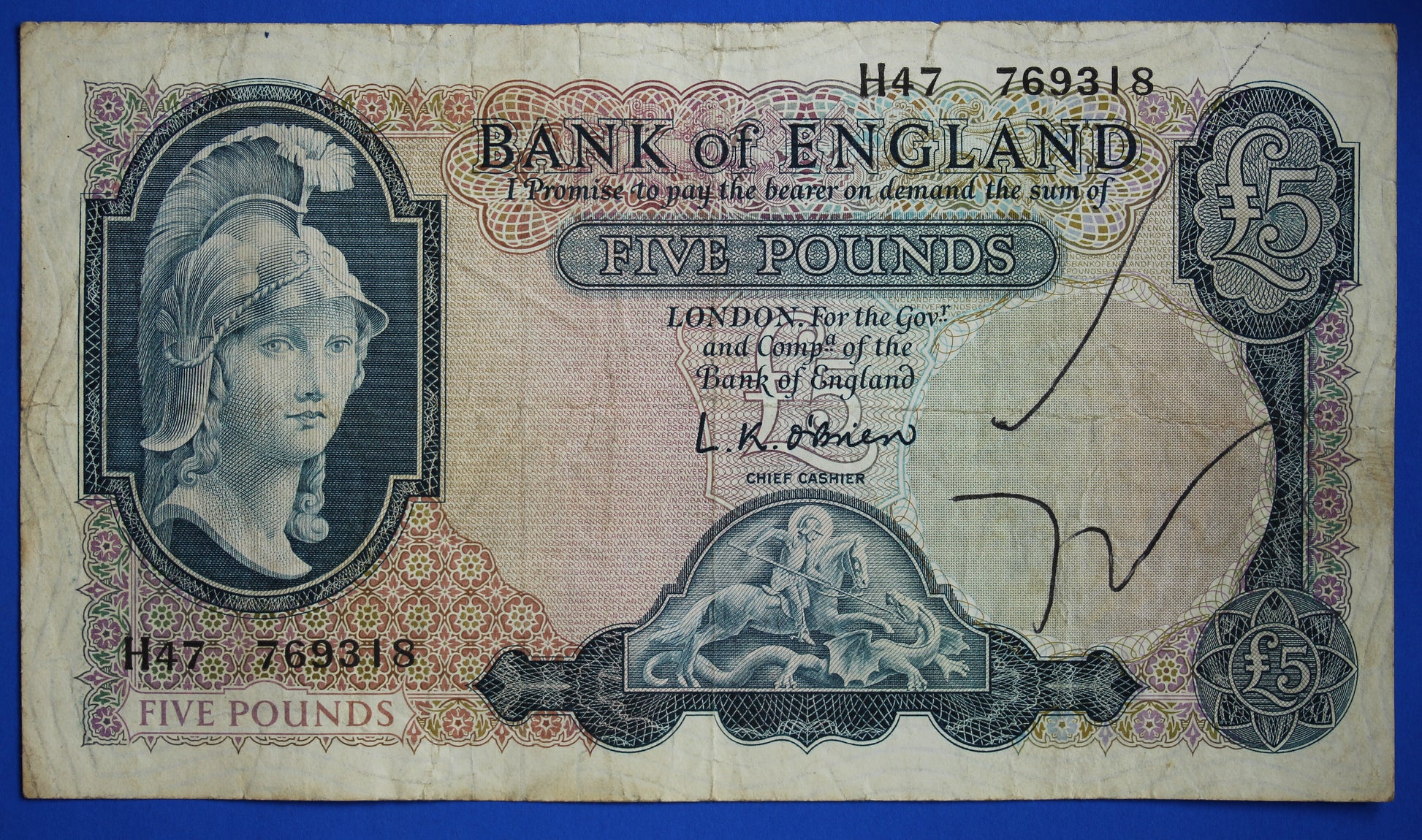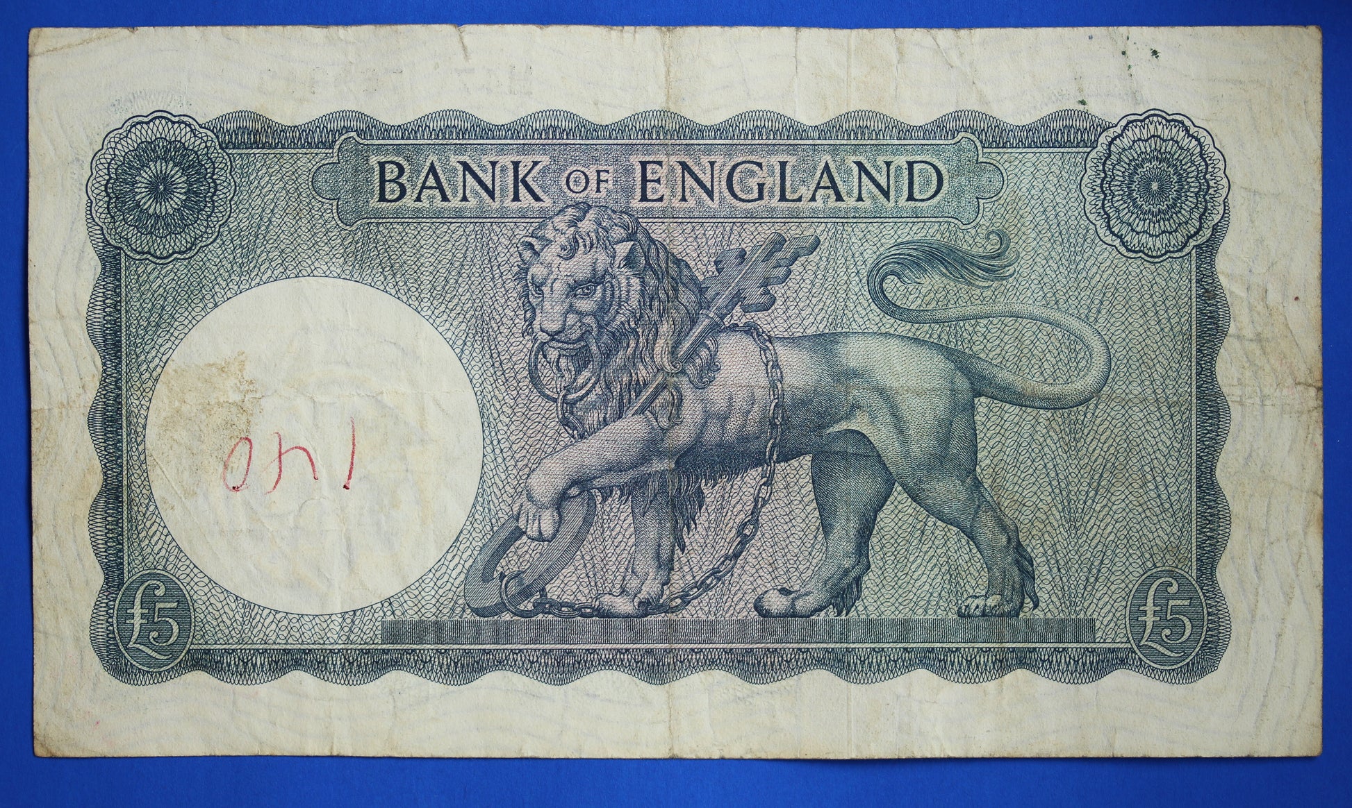 ![1957 Bank of England, BOE Five pounds, O'Brien, Prefix "B19" £5 banknote [10/23 23494]](http://pm-coins.com/cdn/shop/files/lot23494b.jpg?v=1697005750&width=1445)
