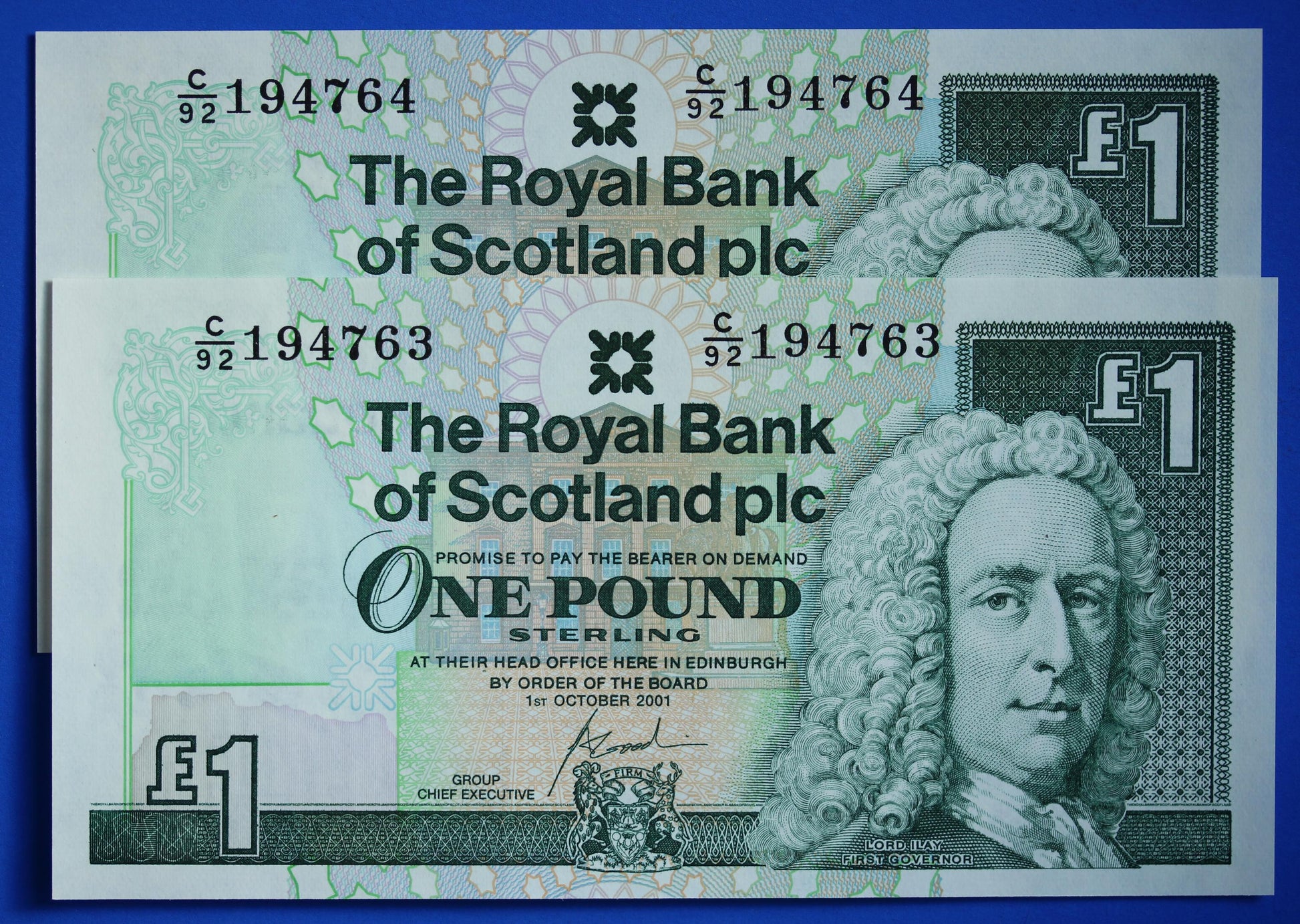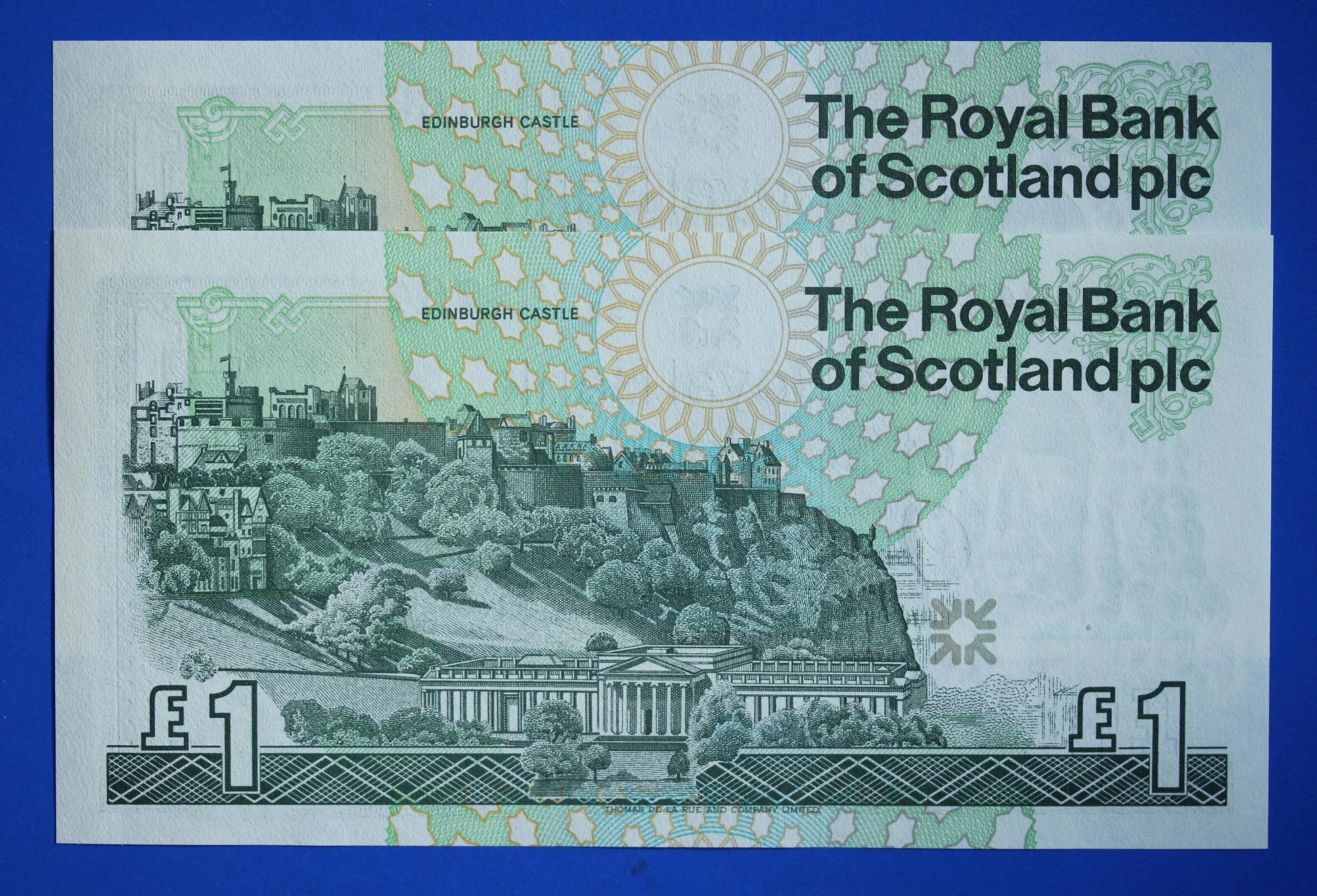2 Royal Bank of Scotland plc One Pound Banknotes, Consecutive Numbers, Scottish Banknotes, Edinburgh Castle [02/25 28106]
