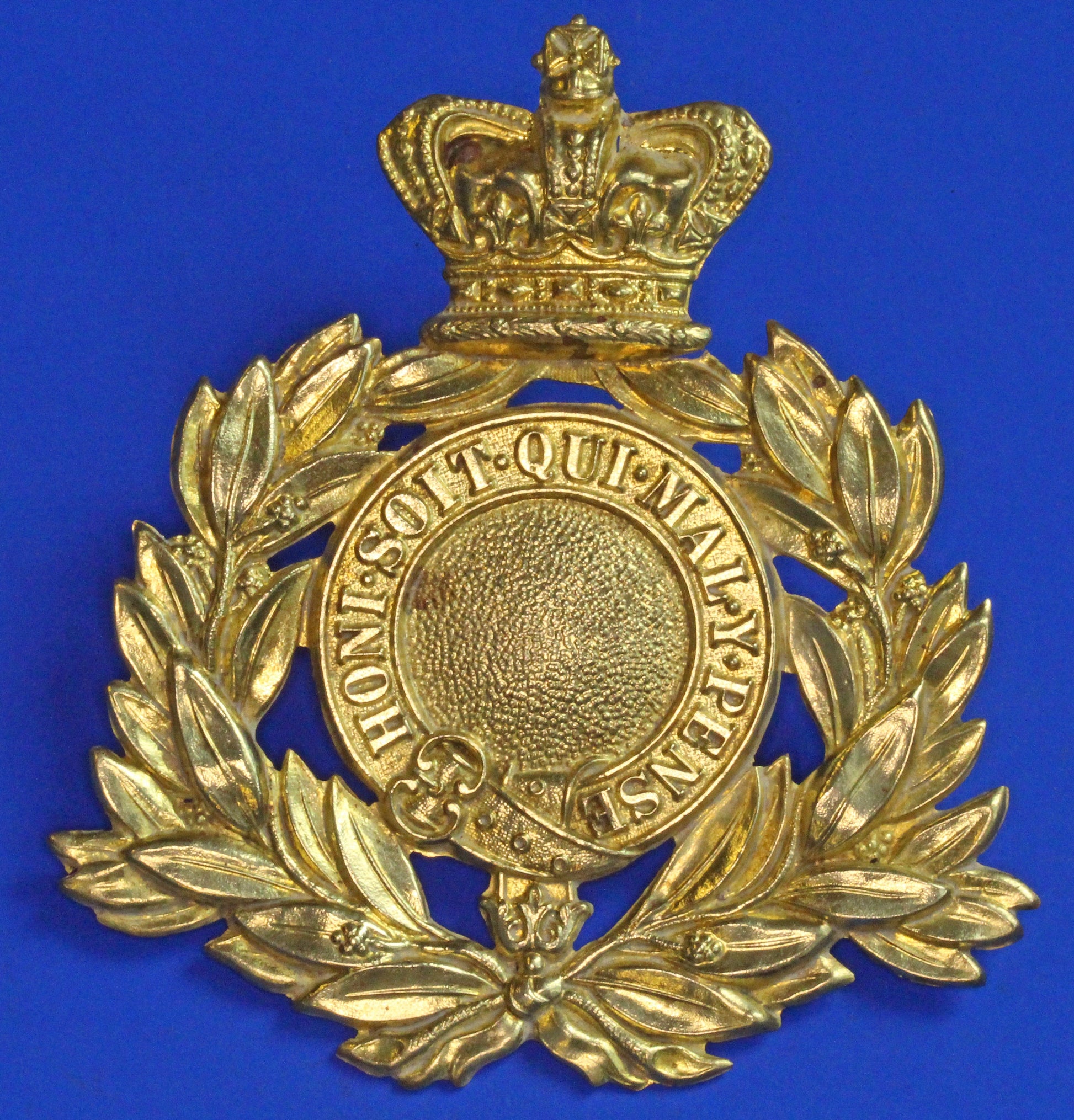 British Army Vintage Victorian - Victoria Crown 1879 Shako Plate Re-strike, non-cut centre, lugs, Height 3.75 inches [R08/24 28140]
