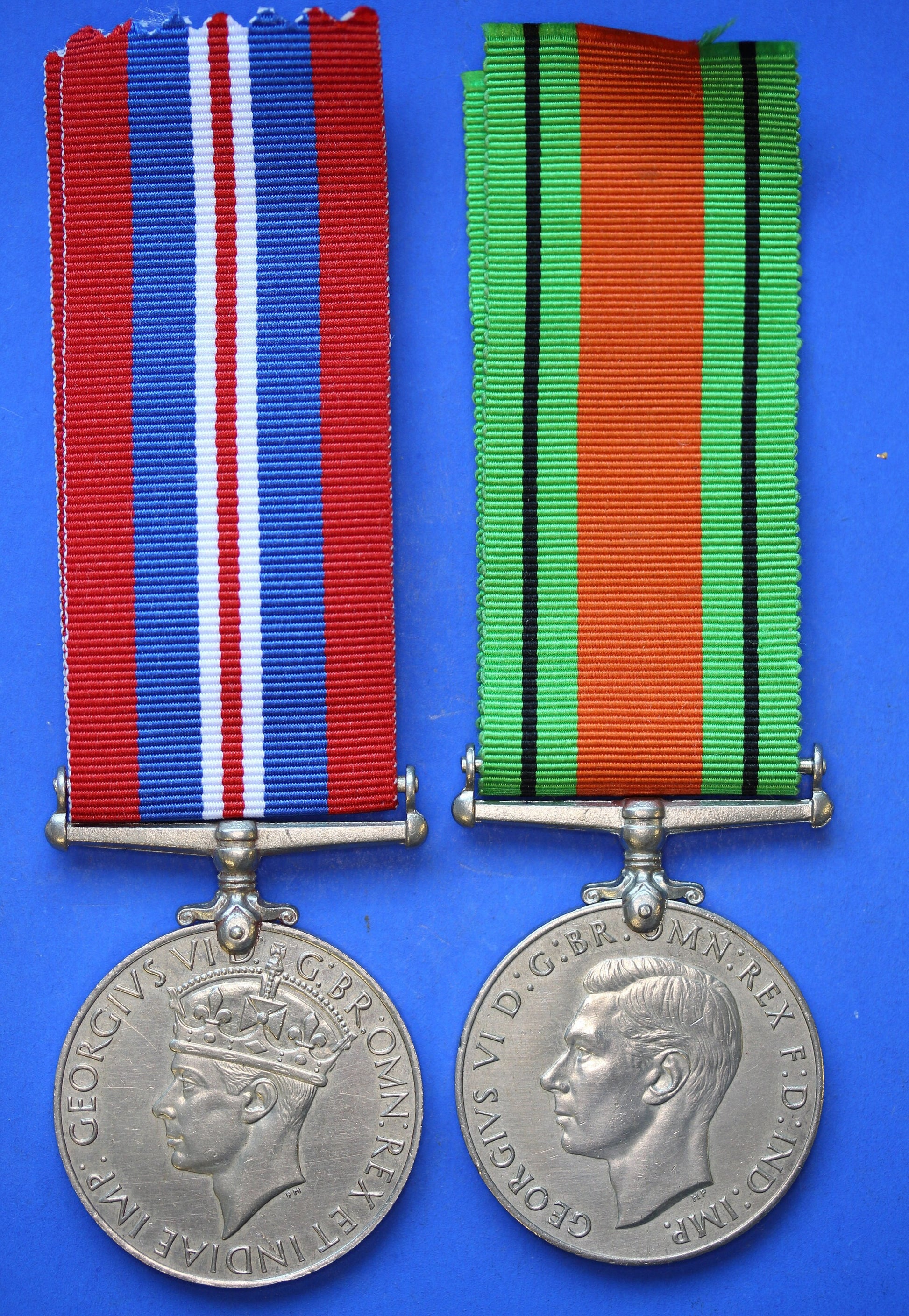 Pair of WW2 medals - George VI Defence and War medals with ribbons [R04/25 29979]