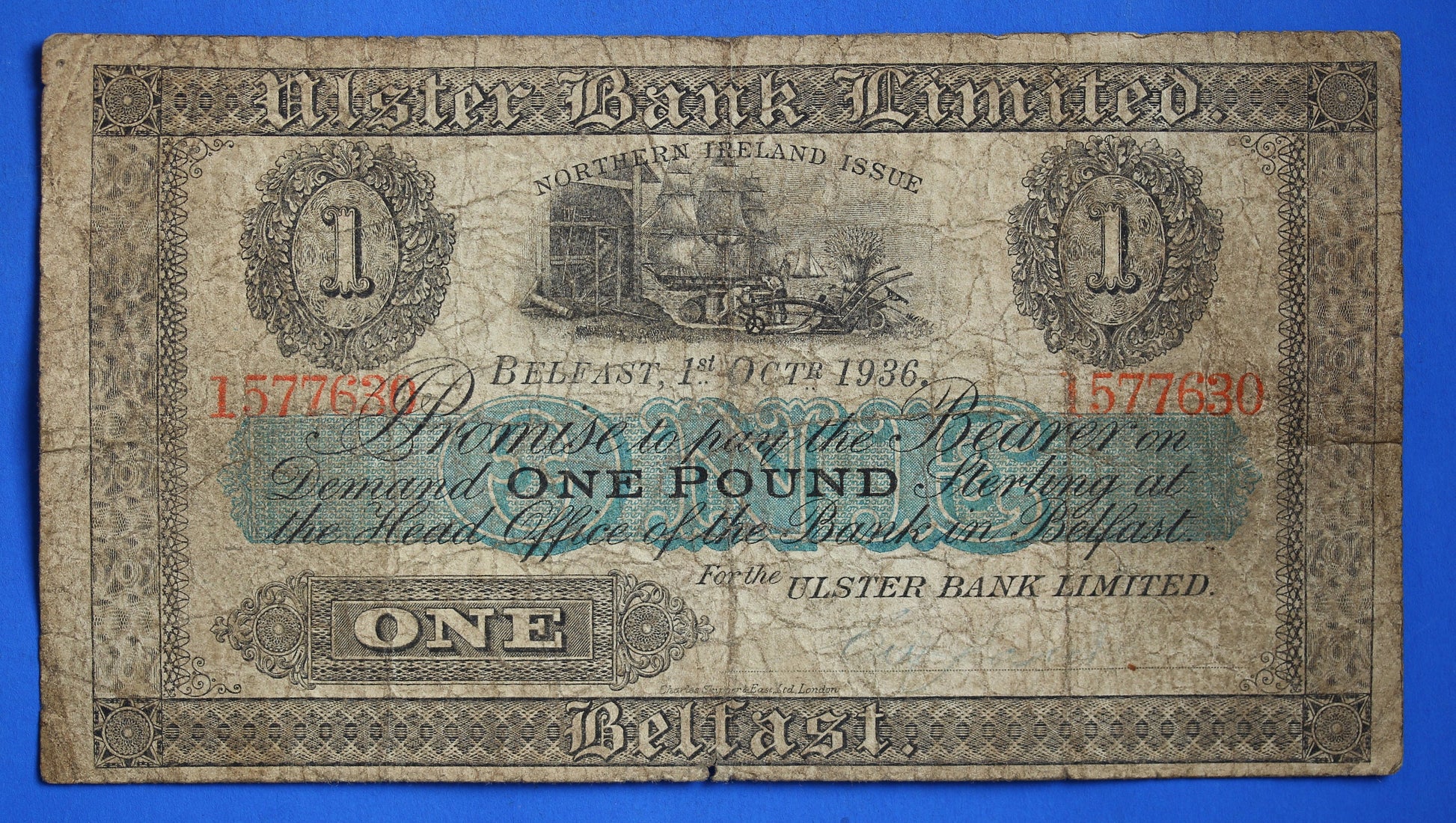1936 Ulster Bank, Northern Ireland, One pound, 1 pound, Hand Signed banknote [05/24 30102]