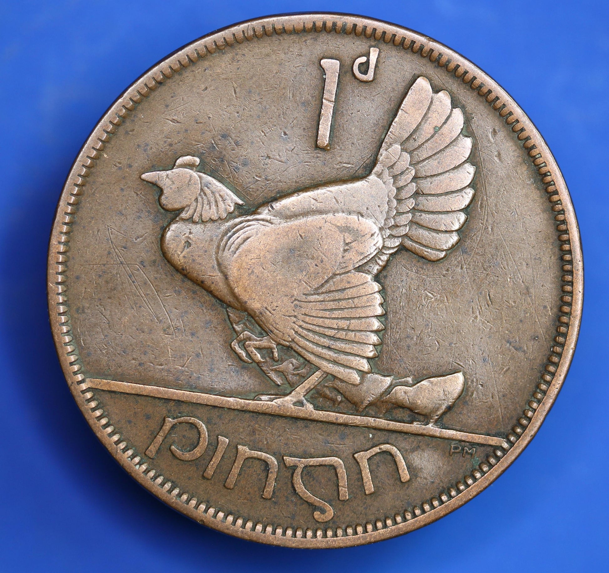 1928 Irish Penny Pennies 1d EIRE Ireland coin, Hen with Chicks [09/25 33182]