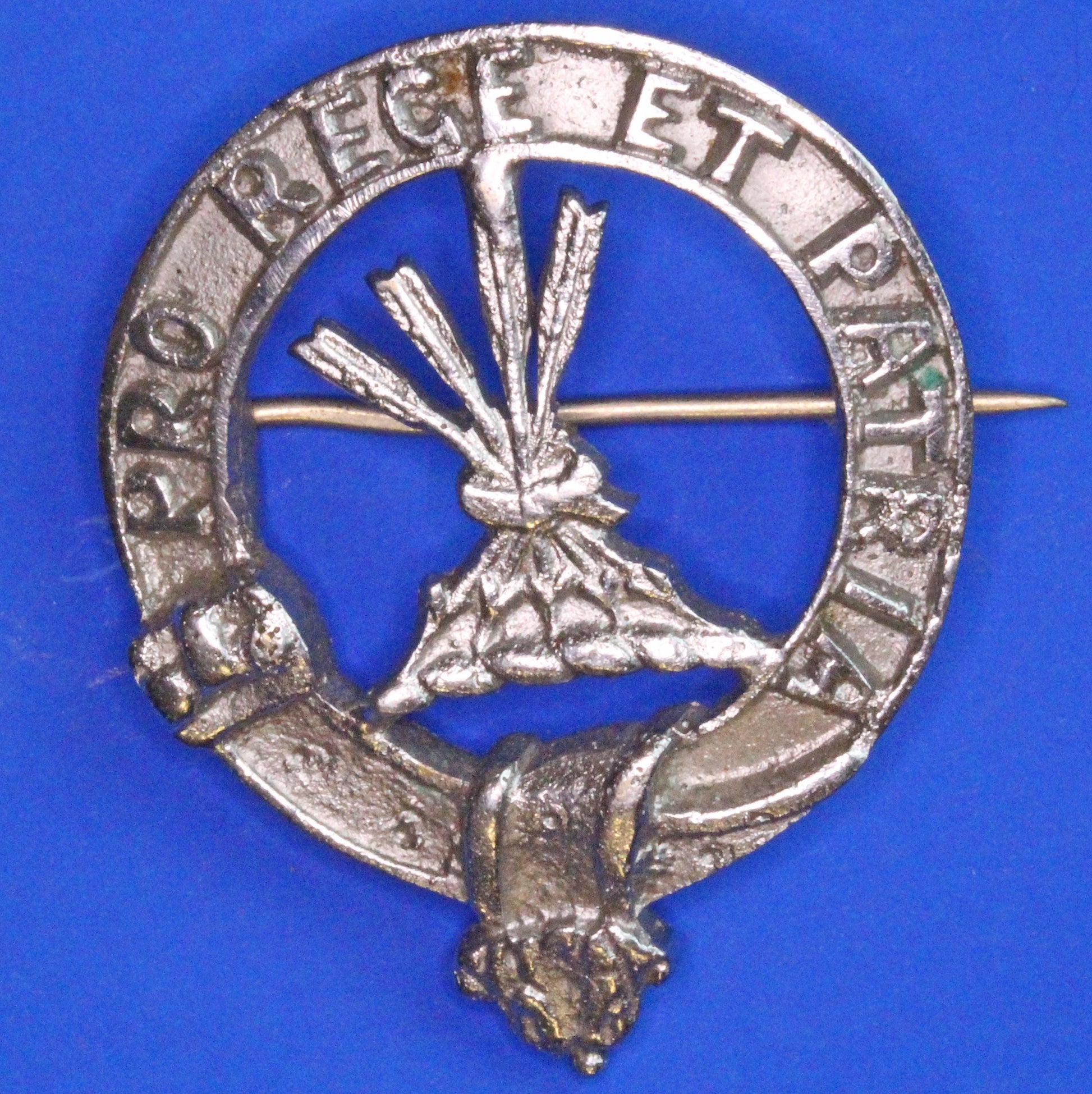 Vintage Scottish Clan Brooch /Bonnet Badge - PRO REGE Et PATRIA 5 arrows [10/25 33449]