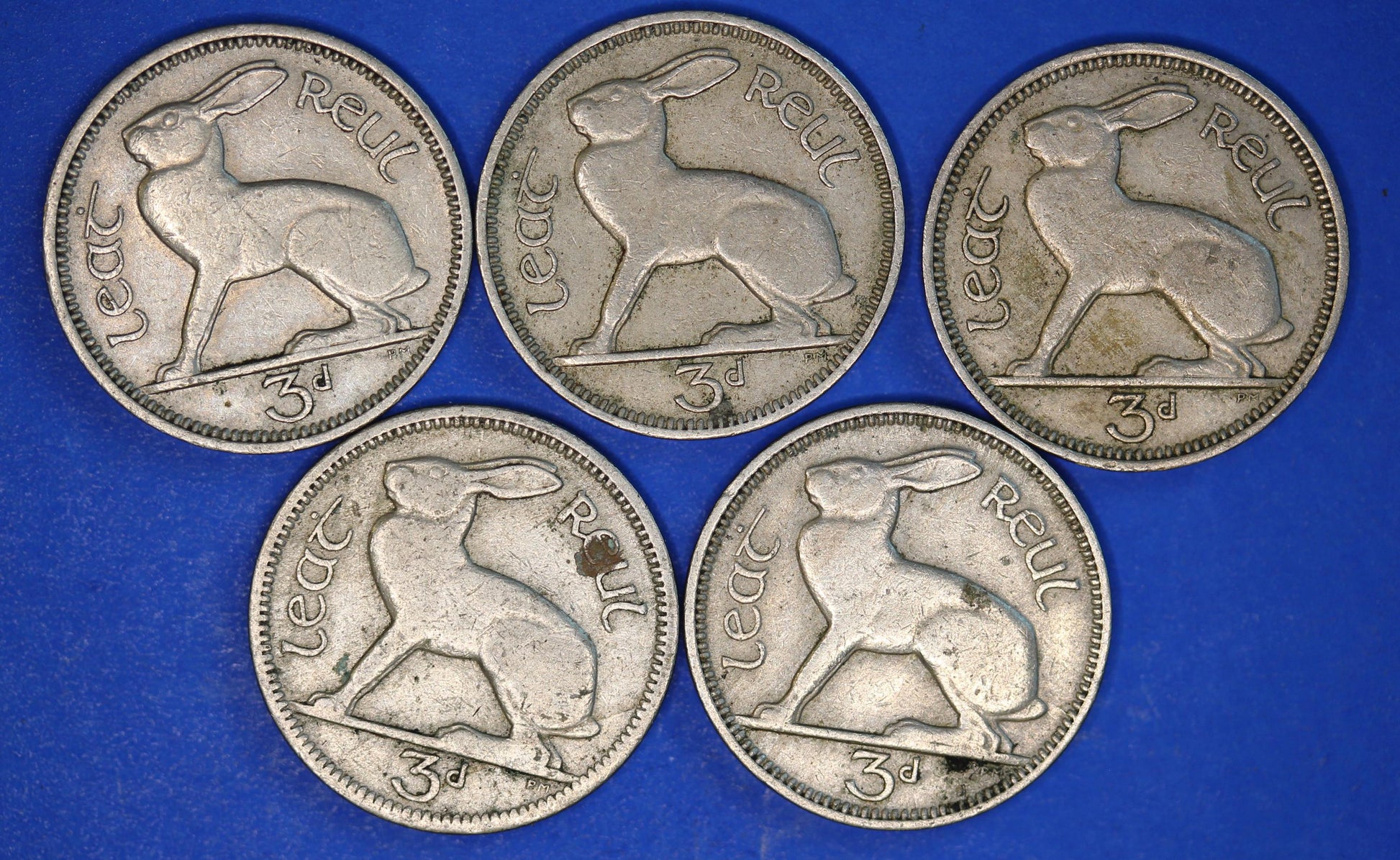 GENUINE 5 Irish Threepences 3d Ireland EIRE, Hare coins, various dates [12/25 33888]