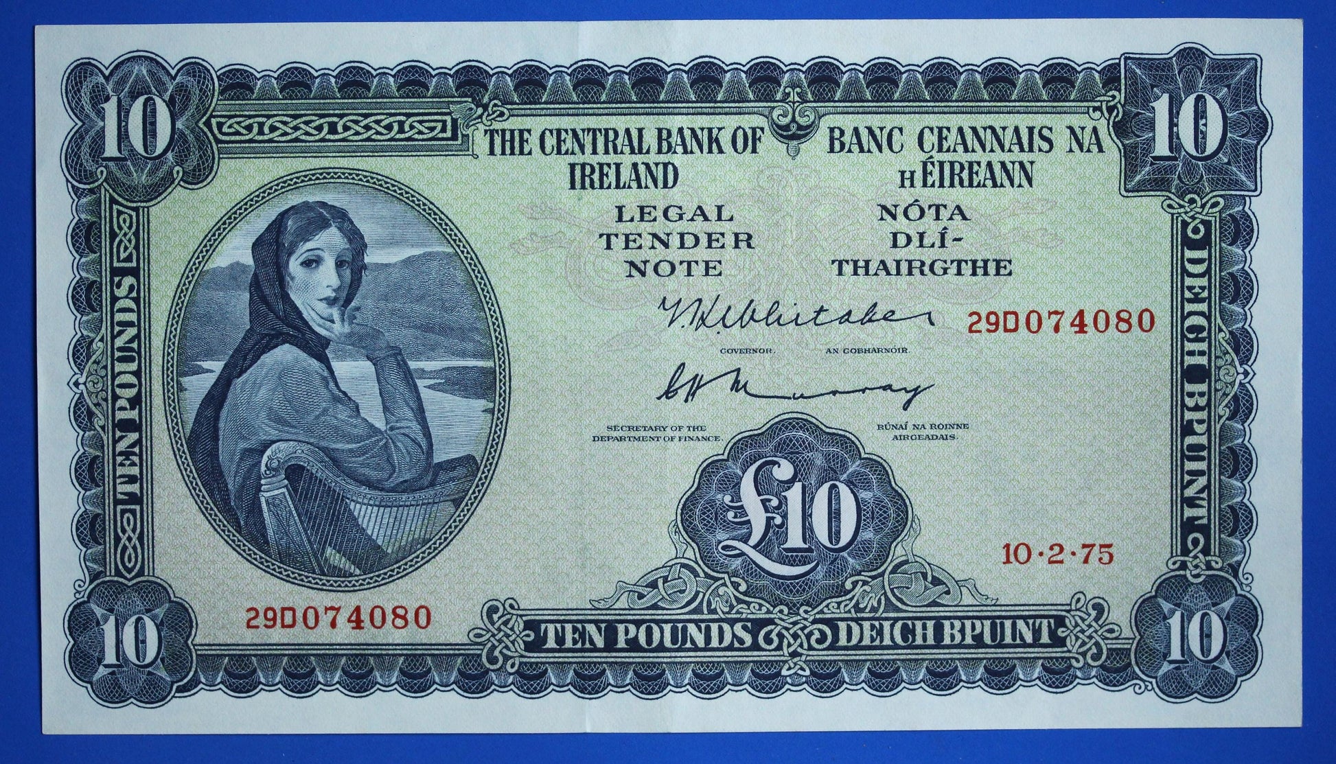 1975 Central Bank of Ireland, Ten Pound, Irish EIRE Lady Lavery banknote [12/25 34006]