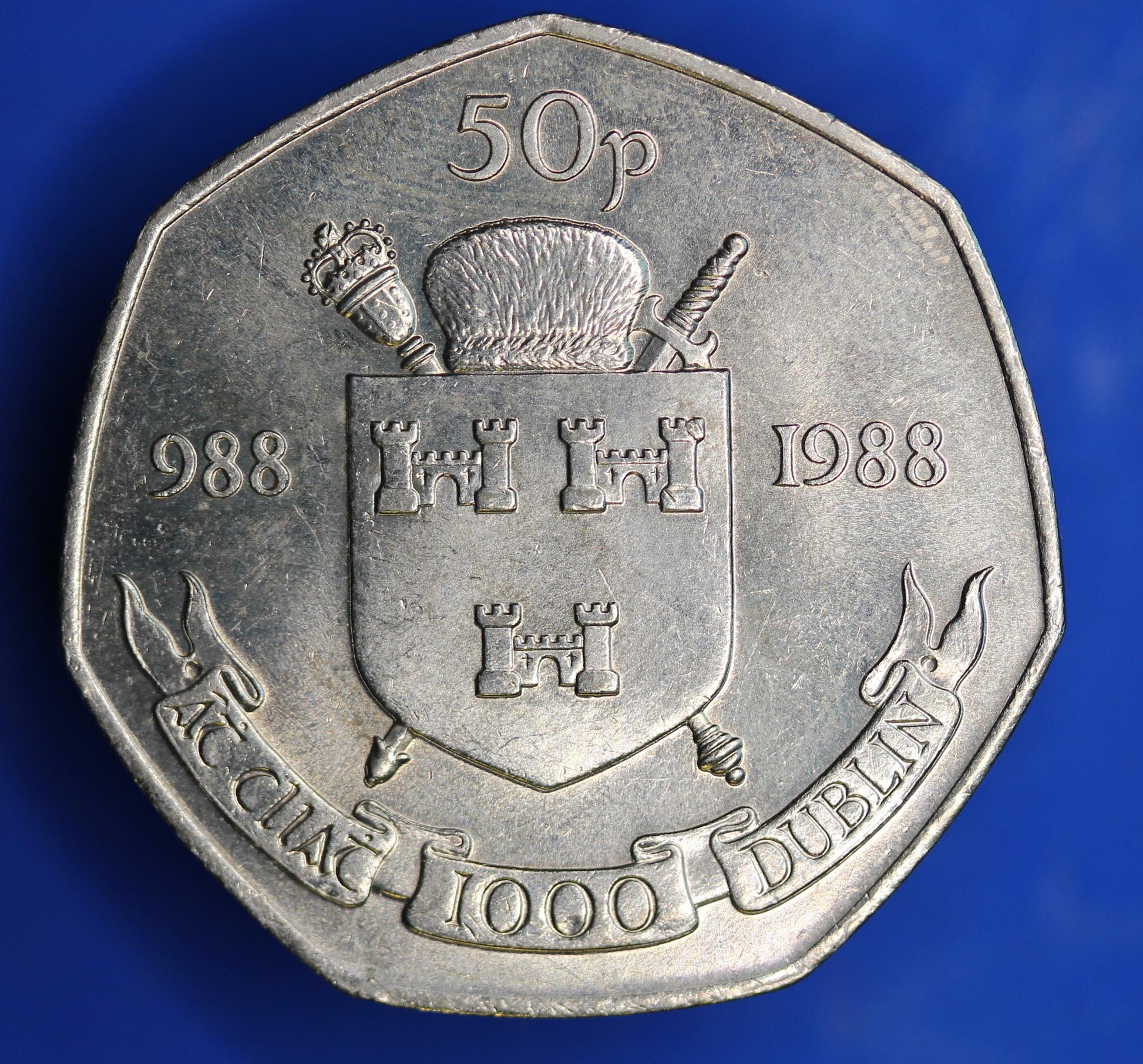 1988 Irish Ireland EIRE Fifty Pence 50p coin, Dublin Millennium [01/26 34088]