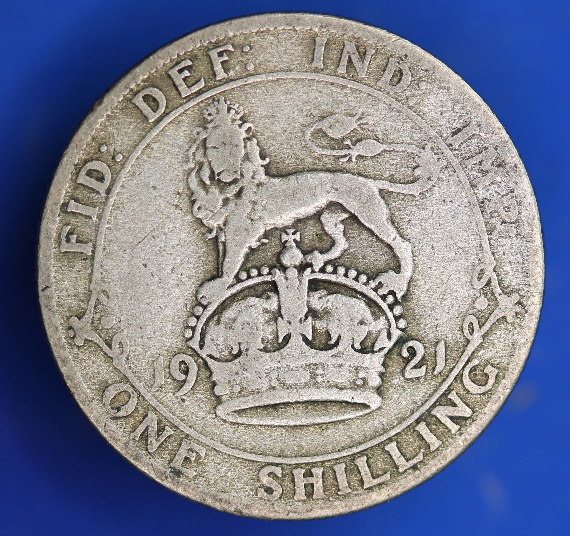 GENUINE British Coin - 1921 George V One Shilling, 50% silver coin [01/26 34202]