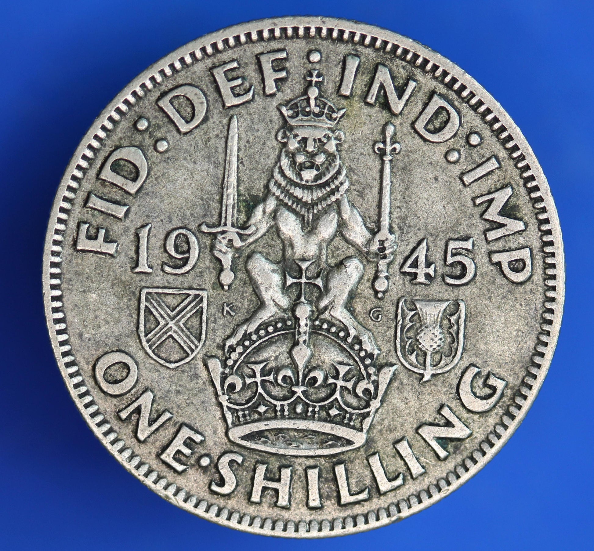 GENUINE British Coin - 1945 George VI Scottish One Shilling, 50% silver coin [02/26 34507]