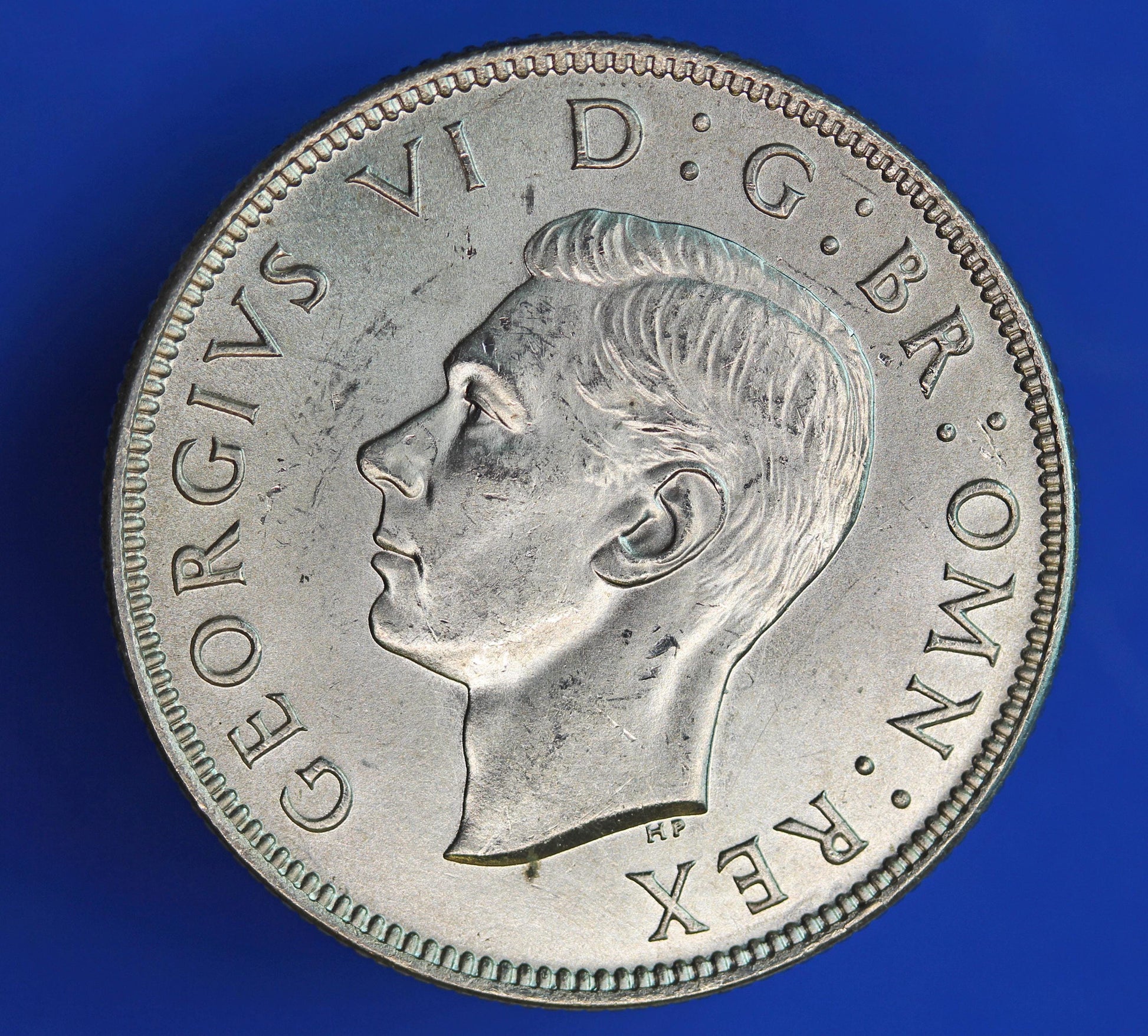 GENUINE British Coin - 1945 George VI florin/ two shillings, 50% silver [02/26 34519]