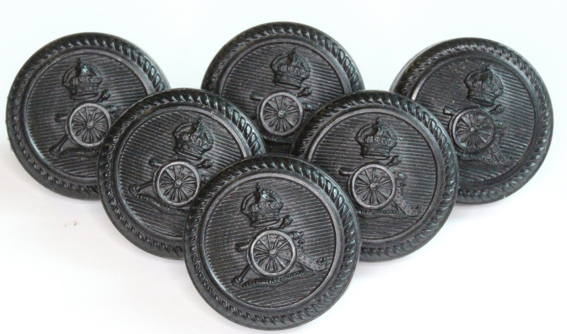 6x WW2 Royal Artillery uniform buttons, 17mm Economy, Bakelite type [ARTBUT]