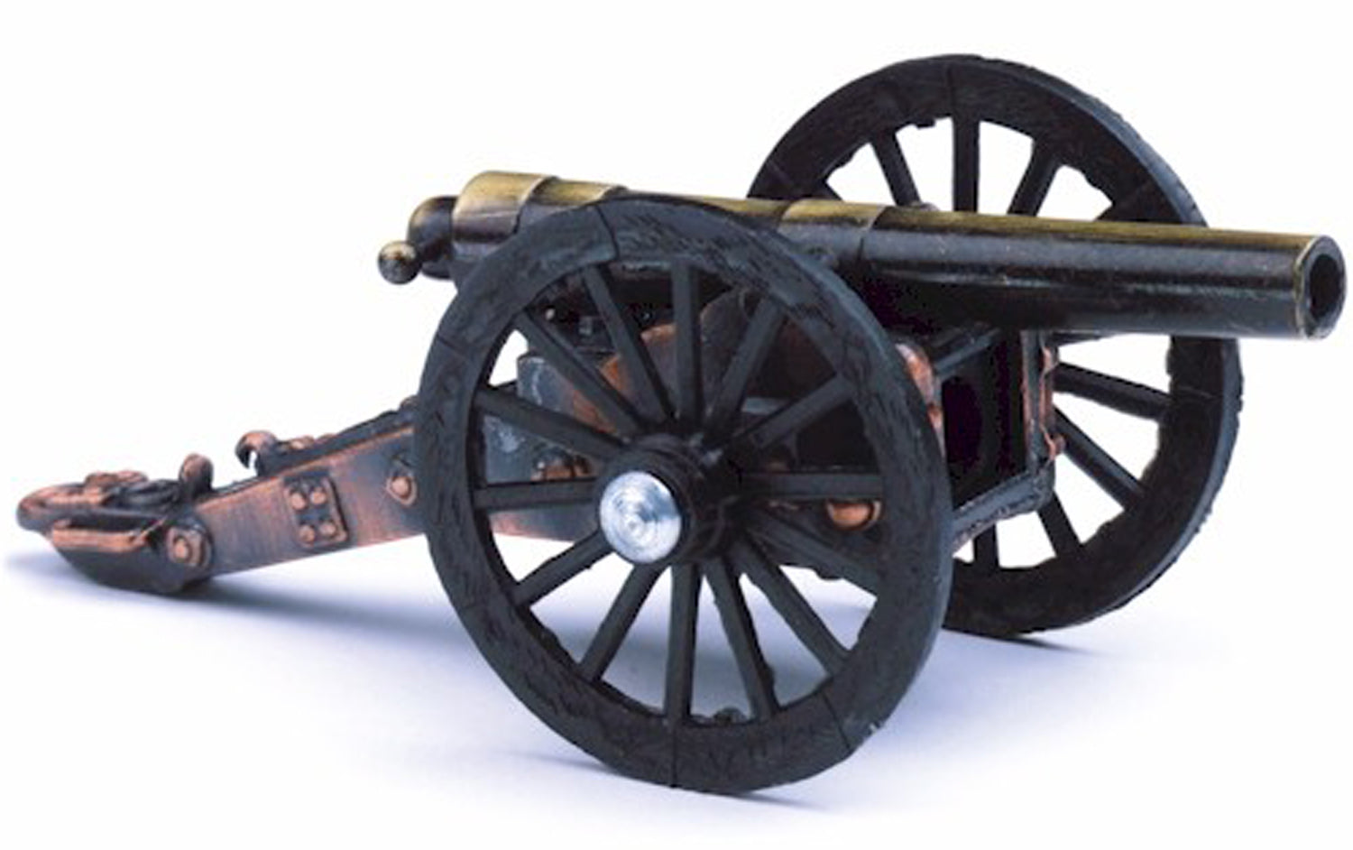 An accurate model of a cannon mounted on a wheeled chassis incorporating a pencil sharpener. Approximately 10cm long.