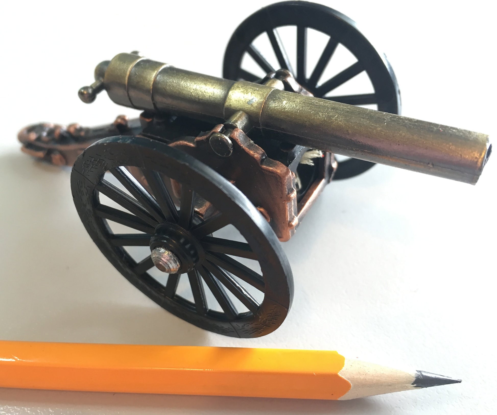 Cannon mounted on a wheeled chassis incorporating a pencil sharpener *[LCAN]