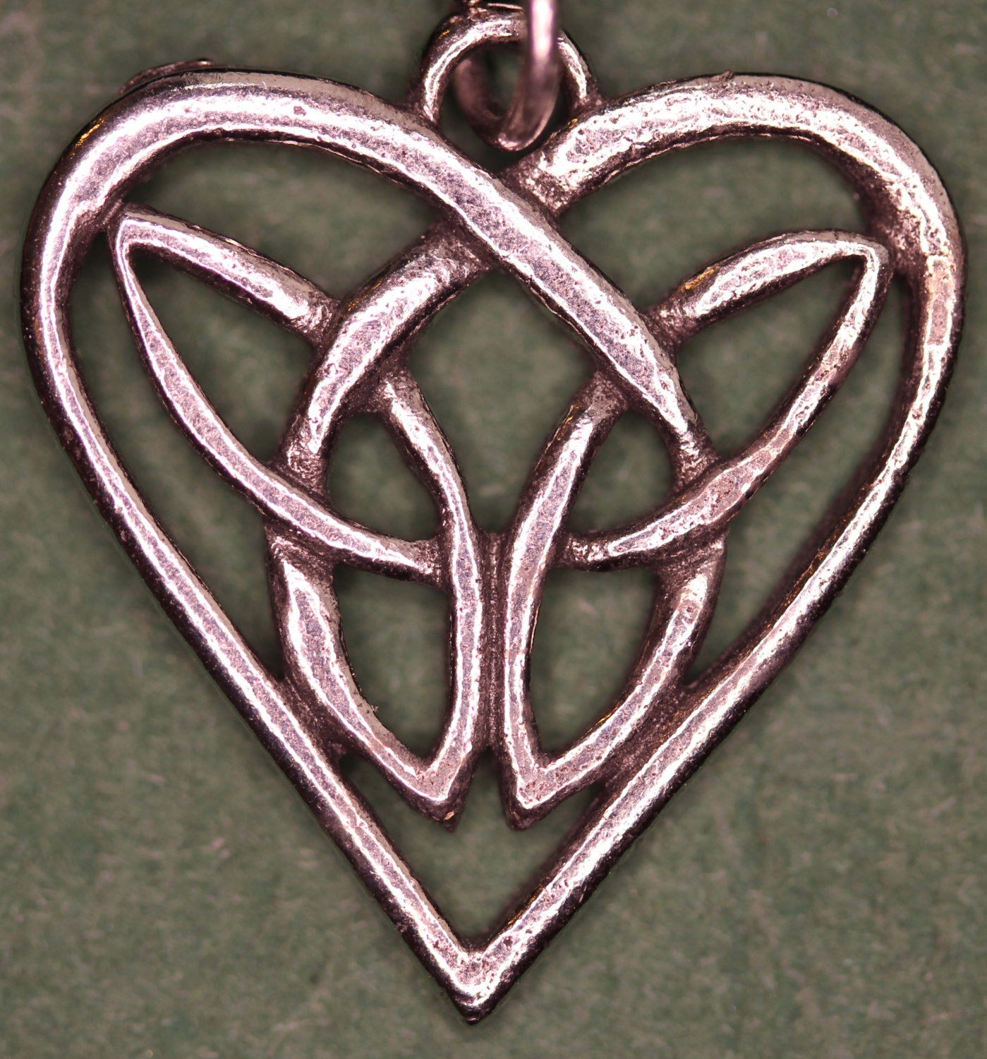 This Celtic interlaced Heart pendant is made from lead-free pewter and is supplied on a silver chain. The information card is a fold-over type with Celtic images on there front and historical information on the reverse.