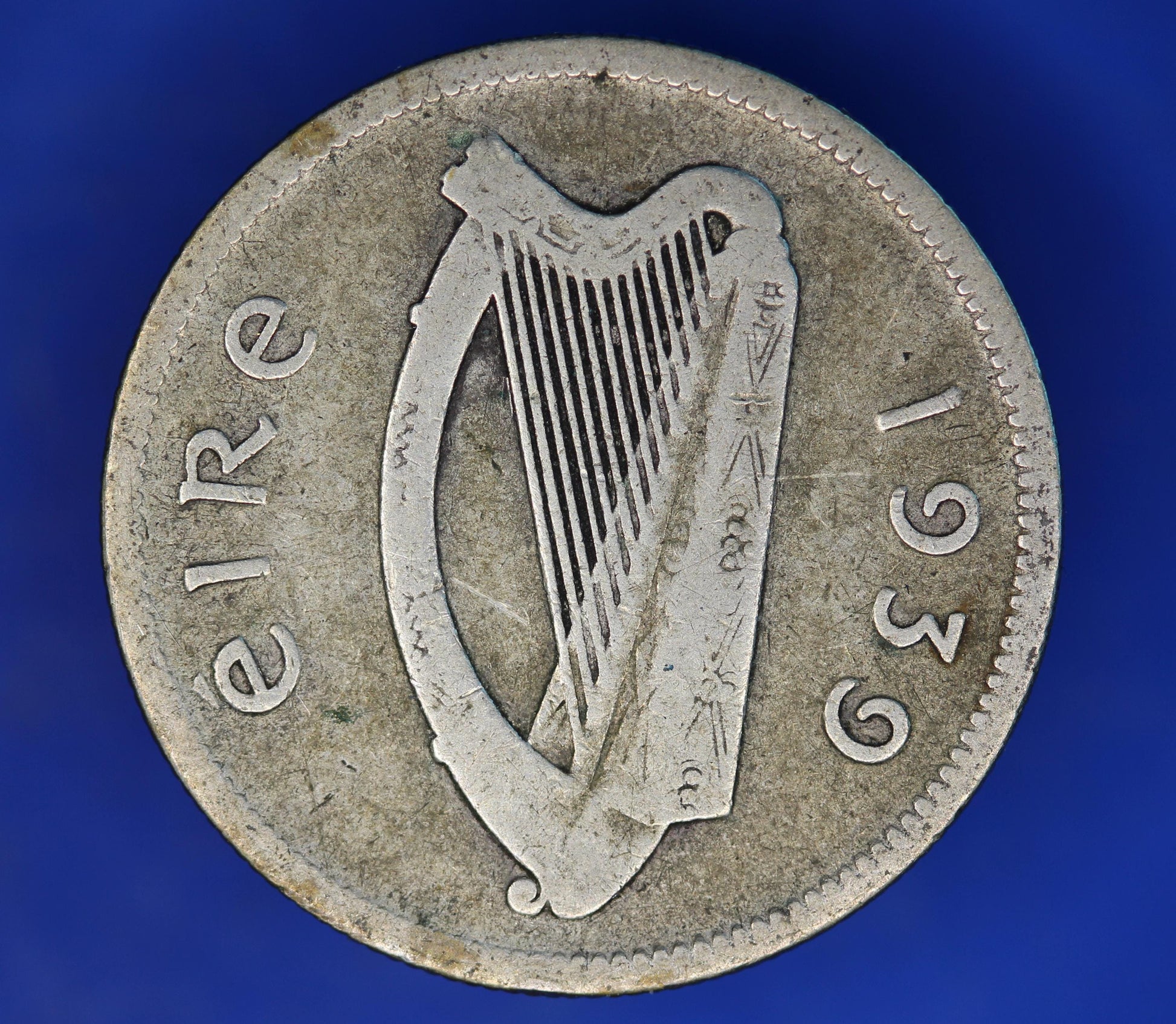 GENUINE 1939 Irish shilling Ireland EIRE coin, 75% silver, Bull Coin [12/24 31589]