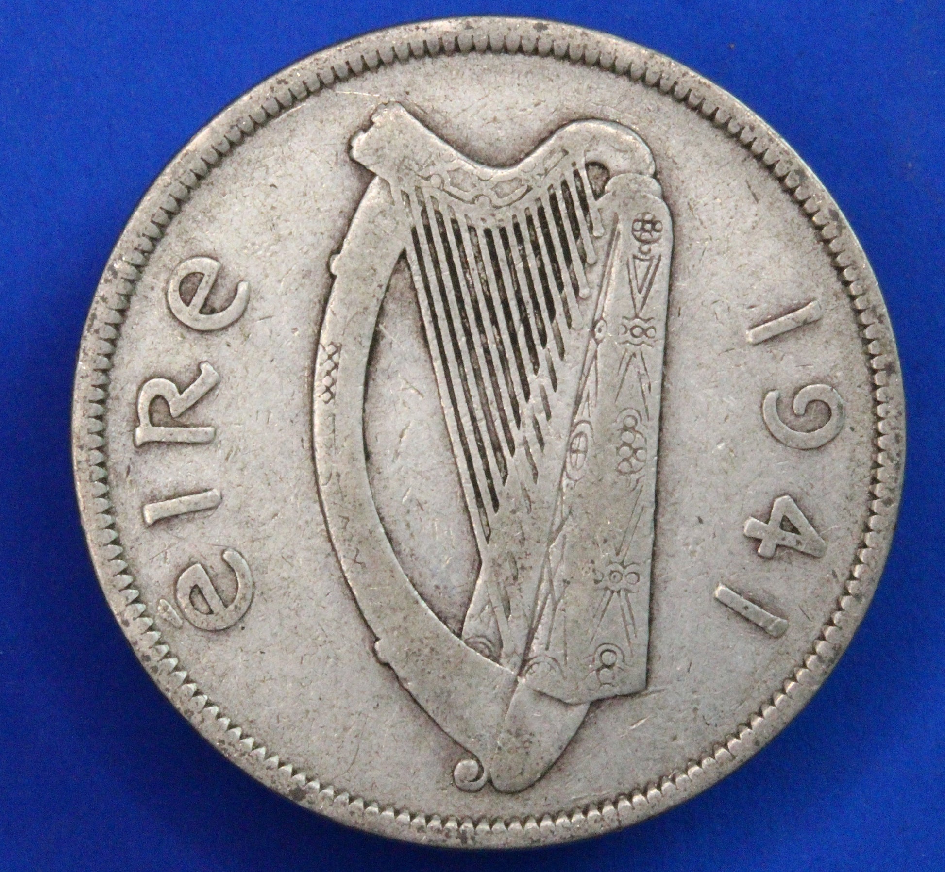 GENUINE 1941 Irish Half Crown 2/6 Ireland EIRE coin, 75% silver, Irish Hunter [R09/24 28330]