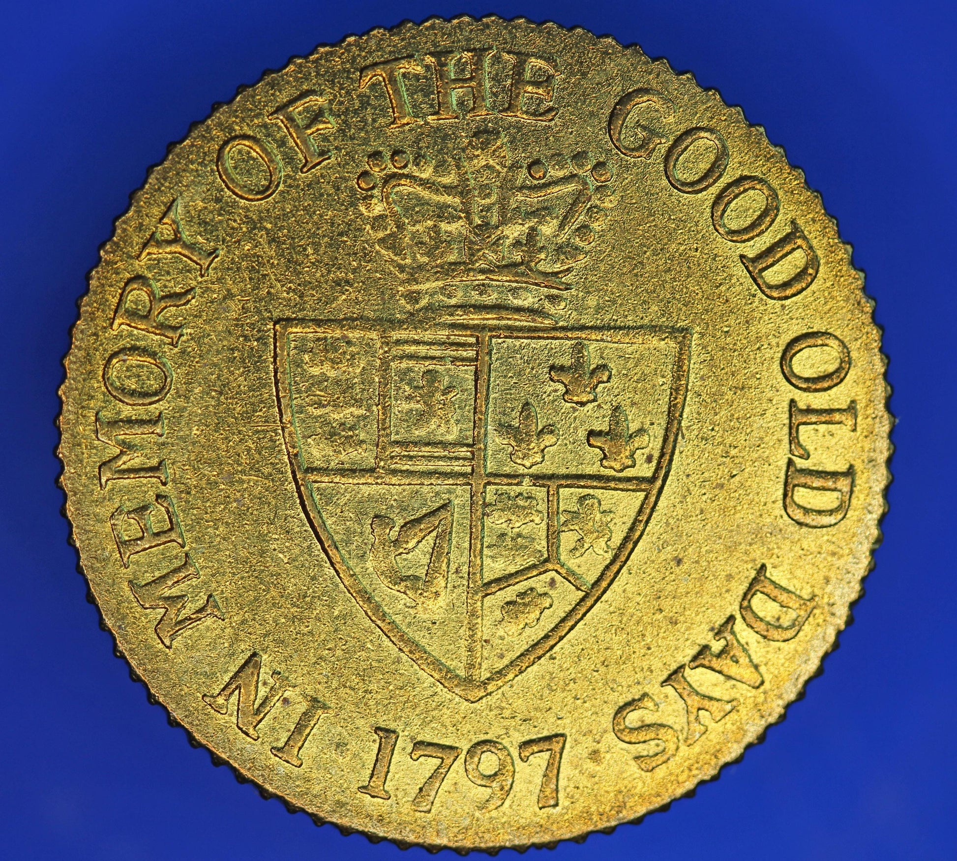 GENUINE British Coin - George III brass Guinea gaming token "1797 Good Old Days" [02/25 31880]