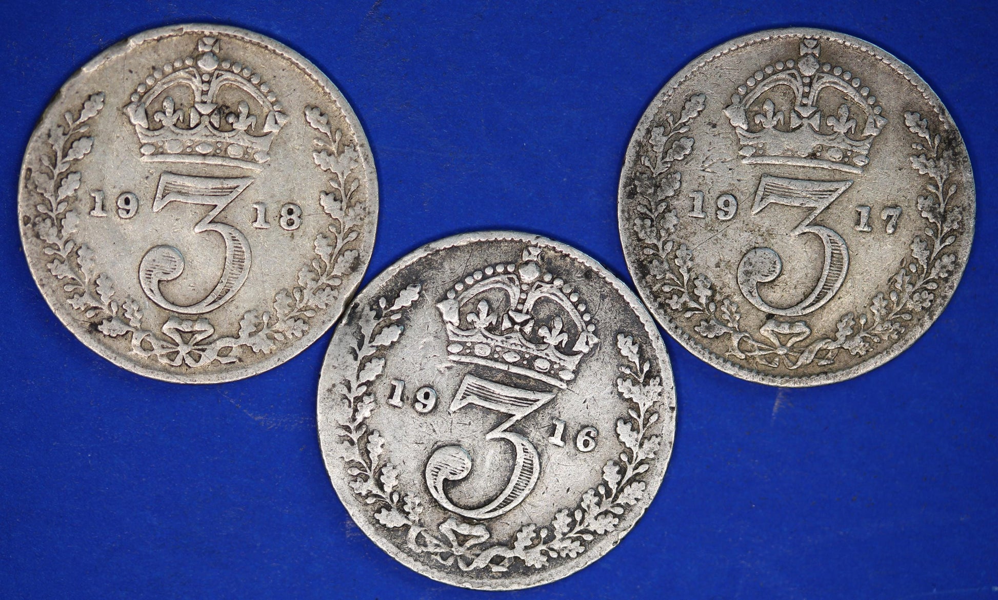 GENUINE British Coins - George V threepences, 92.5% silver 3d coins [10/24 31243]