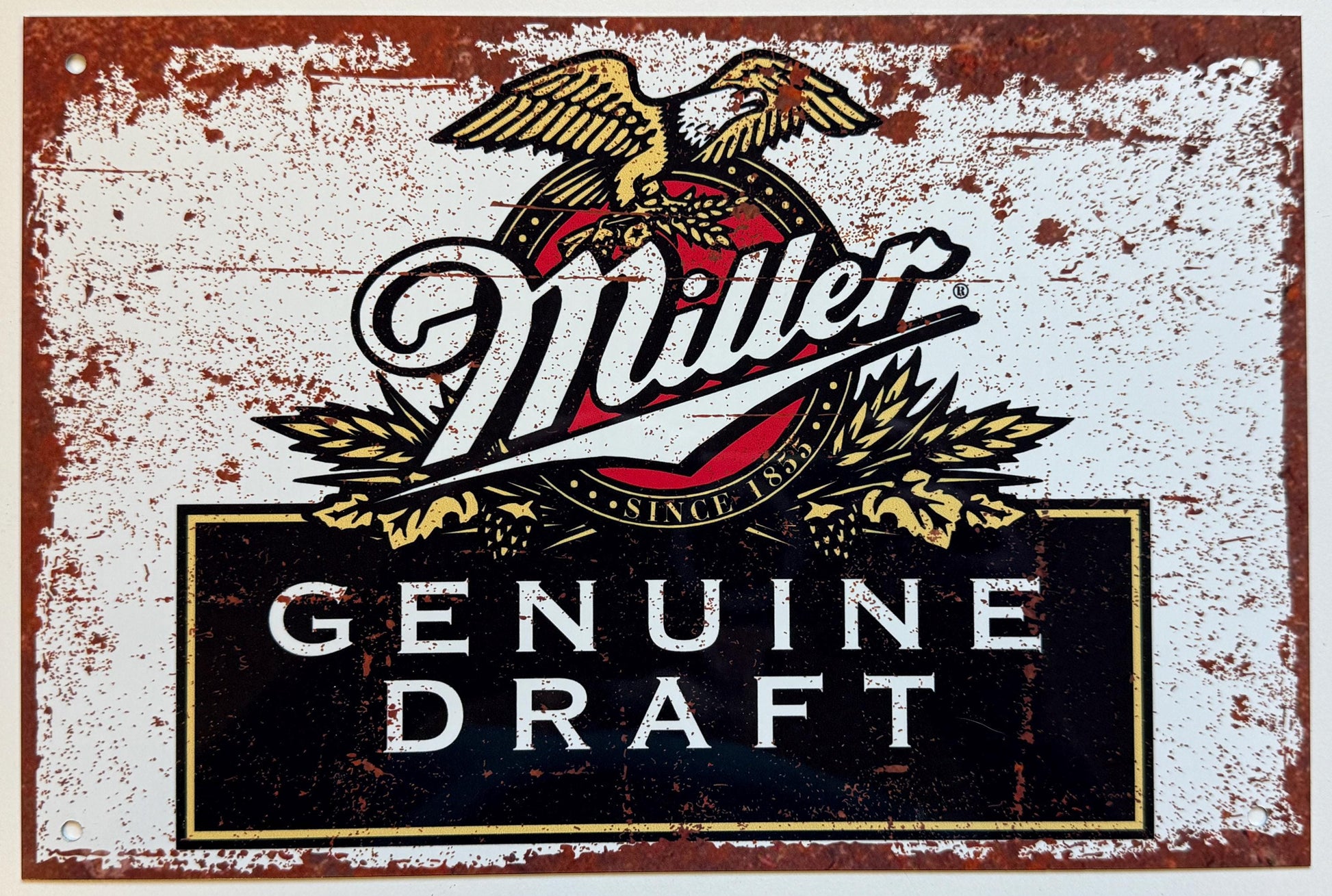 Metal Vintage Style Wall Sign - Miller Draft Logo Metal Sign Advertising Sign, Rusty look, 10.5 x 7 inch [MILL1]