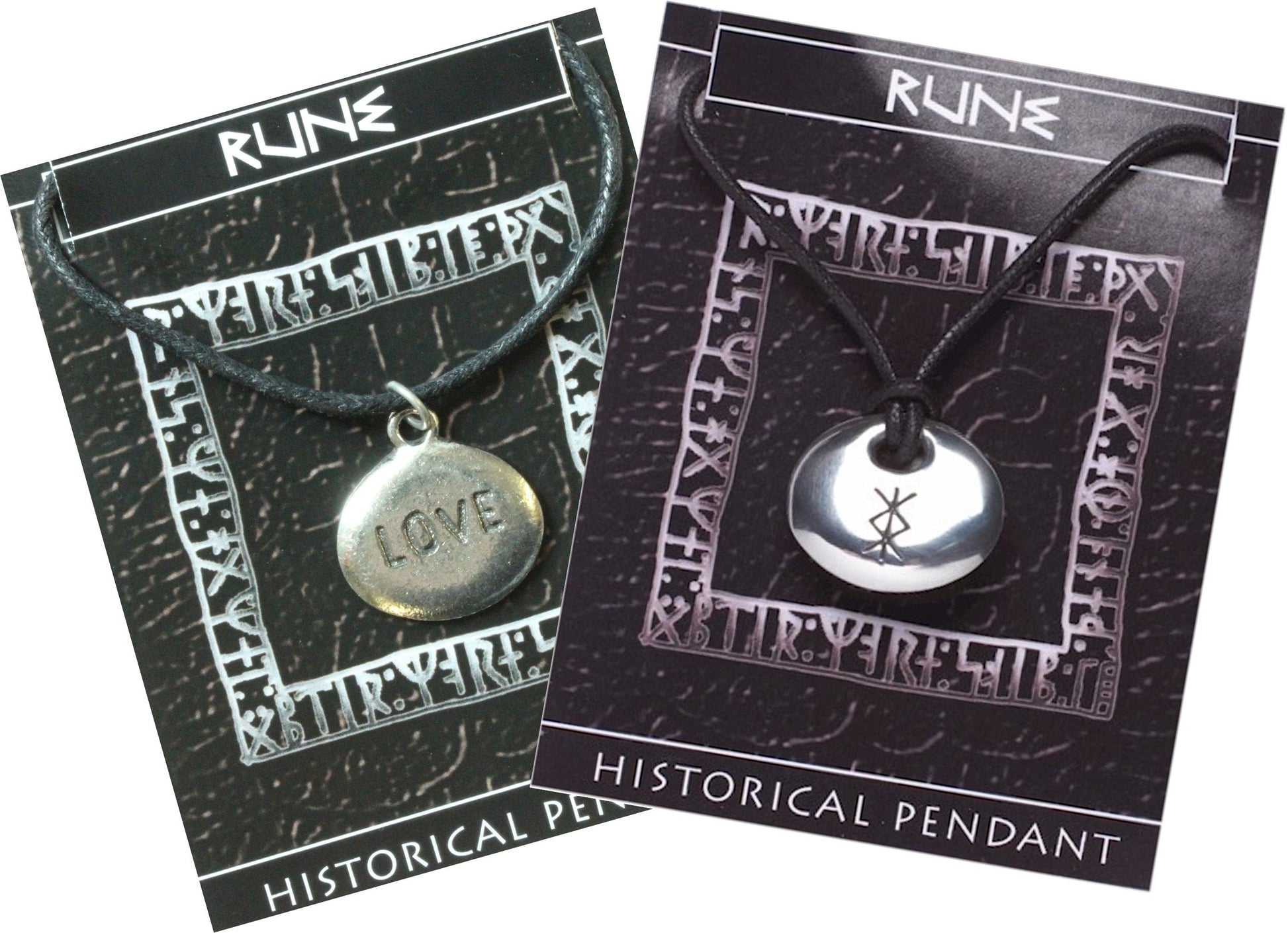 Viking Rune Stone Pendants - Love and Protection on a waxed cord, with information card [RUNE2]