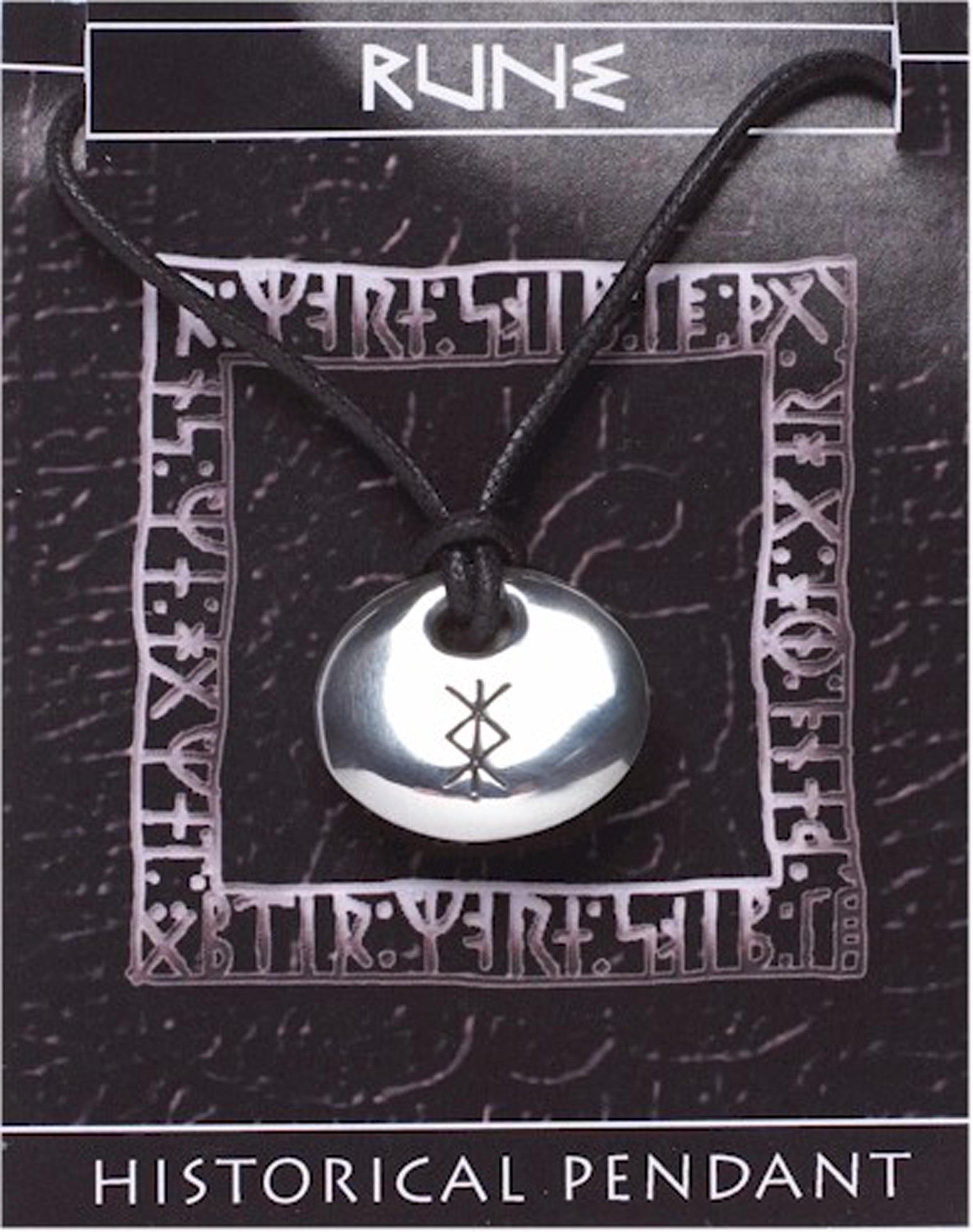 Viking Rune Stone Pendant - Protection on a waxed cord, with information card [RUNEP]
