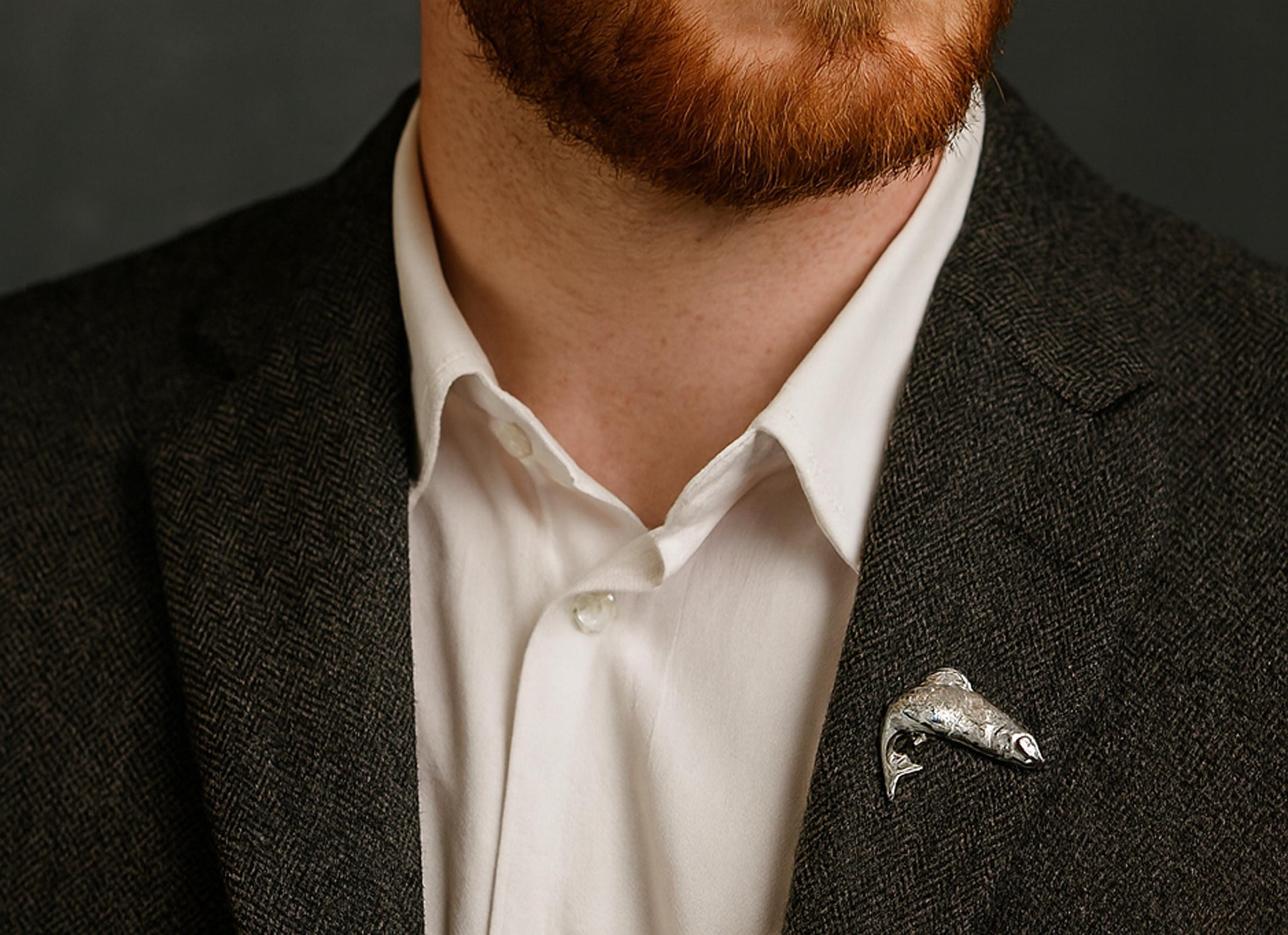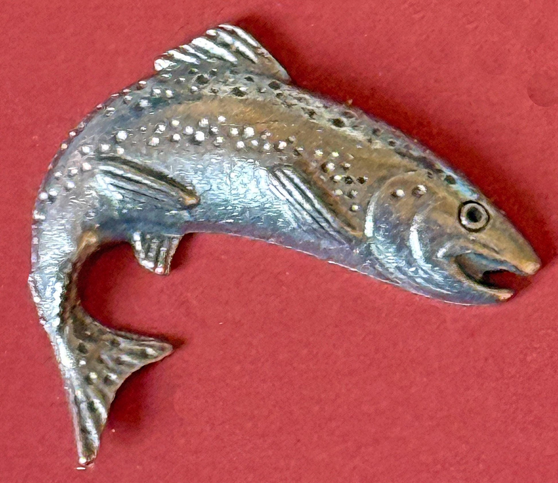 Pewter Scottish salmon fish made in pewter supplied on a pin with clasp [SSALPIN]