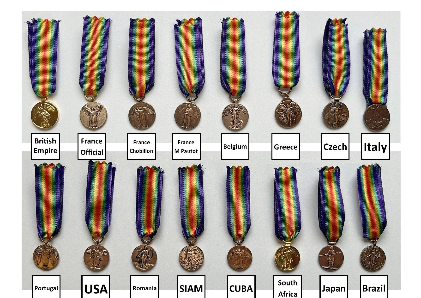 REPRODUCTION Inter-Allied Victory Medal of World War I by country.