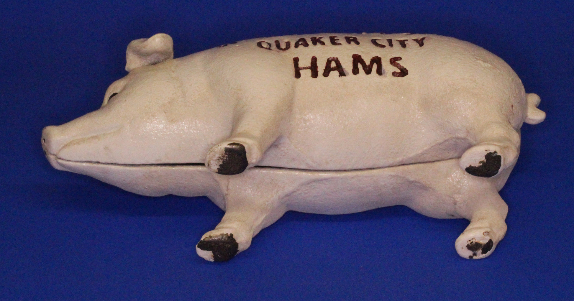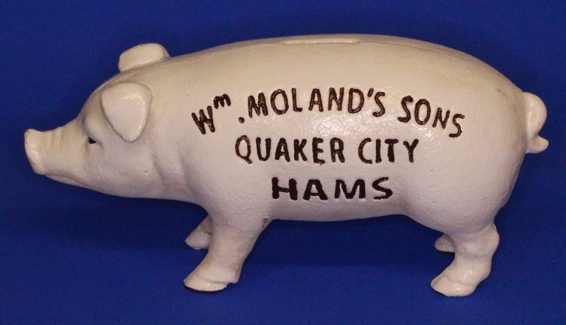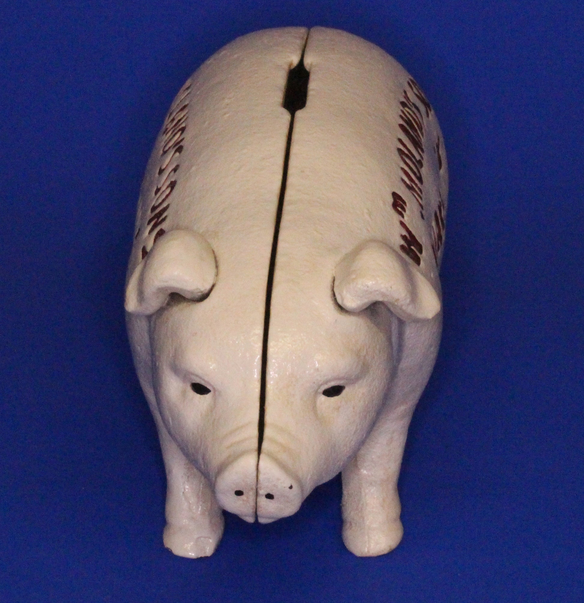 Vintage Style Cast Iron piggy bank Moland's Hams, 18cm long, moneybox [XBPIS]