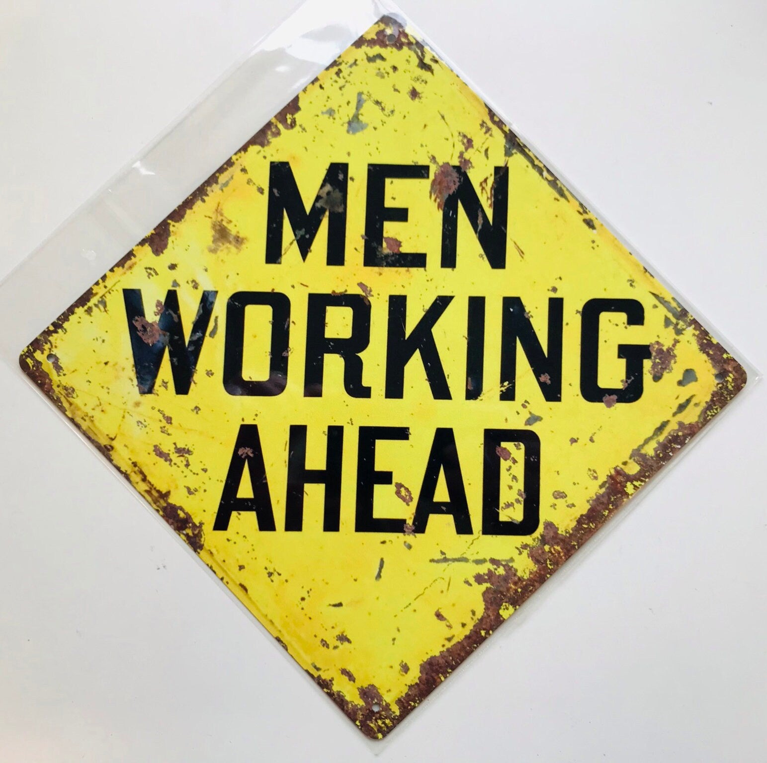 Metal Vintage Style Wall Sign - MEN WORKING AHEAD 8 x 8 inch [WORK1]